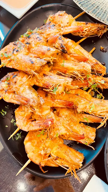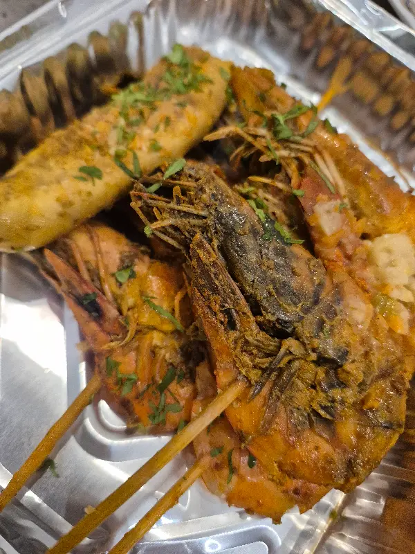 숯불 향이 은은하게 배어 있는 새우 구이는 쫄깃한 식감과 풍부한 육즙을 자랑합니다. 신선한 해산물에서만 느낄 수 있는 깊은 풍미가 일품입니다.