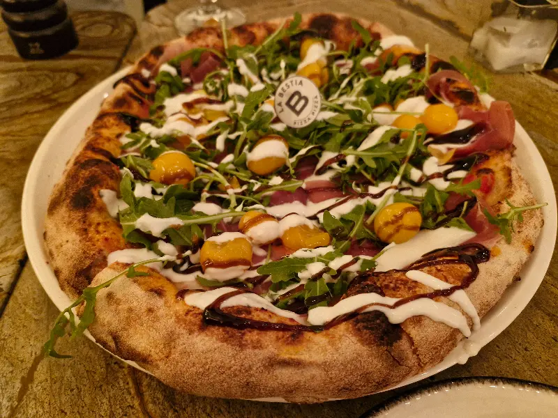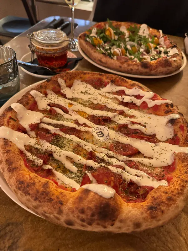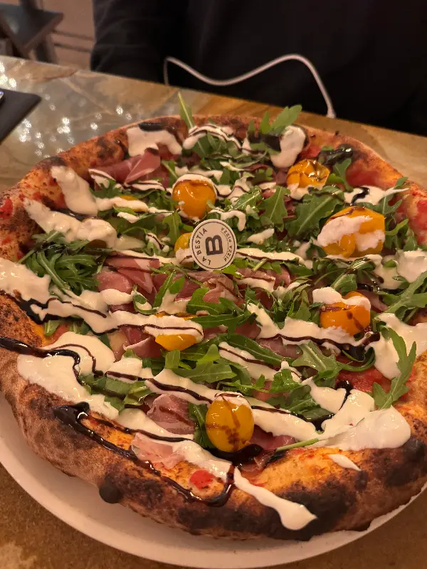 ‘라 베스타’는 얇고 바삭한 도우 위에 신선한 루꼴라, 프로슈토, 그리고 달콤한 방울토마토가 듬뿍 올려져 있었다. 한 입 베어 무는 순간, 입 안 가득 퍼지는 풍미는 그야말로 환상적이었다. 도우의 바삭함과 쫀득함이 절묘하게 어우러졌고, 신선한 재료들은 입 안에서 춤을 추는 듯했다. 특히 프로슈토의 짭짤함과 방울토마토의 달콤함은 환상의 궁합을 자랑했다.