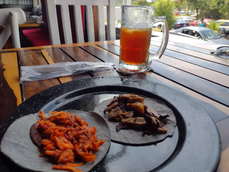 놀랍게도 Guandola Bar and Brewery는 채식 메뉴도 제공하고 있었습니다. 채식 타코와 독수리 버섯, 팅가를 주문했는데, 특히 수제 파란색 토르티야가 인상적이었습니다. 일반 토르티야보다 더욱 쫄깃하고 고소한 맛이 났습니다. 채식주의자 친구도 매우 만족스러워하며, 다음에도 꼭 다시 방문하고 싶다고 말했습니다.