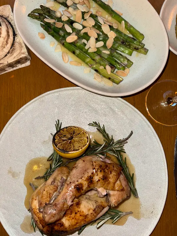 애피타이저로는 참치 사시미와 대형 구운 새우를 주문했다. 생 참치는 입 안에서 살살 녹았고, 올리브 타프나드와 함께 먹으니 풍미가 더욱 살아났다. 대형 구운 새우는 쫄깃한 식감과 고소한 맛이 일품이었다. 메인 요리를 먹기 전 입맛을 돋우기에 완벽한 선택이었다.