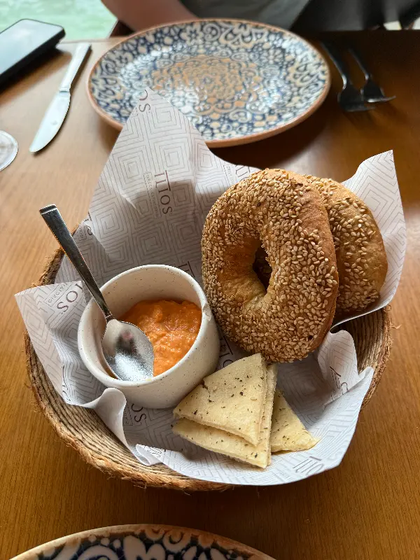 식사를 시작하기 전 제공되는 빵과 소스 또한 훌륭했다. 겉은 바삭하고 속은 촉촉한 빵은 담백하면서도 고소했고, 함께 제공되는 소스는 짭짤하면서도 매콤한 맛이 어우러져 입맛을 돋우었다. 특히 참깨가 듬뿍 뿌려진 빵은 고소한 풍미가 더욱 강하게 느껴져 잊을 수 없는 맛이었다.