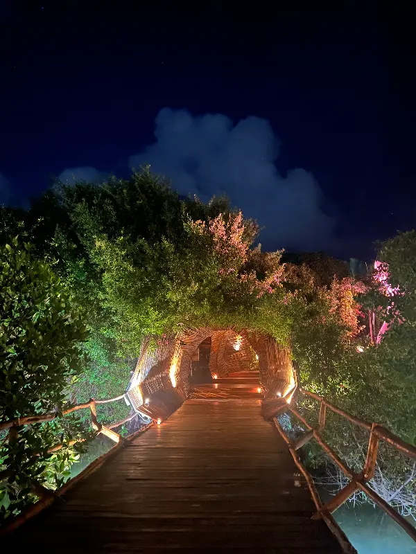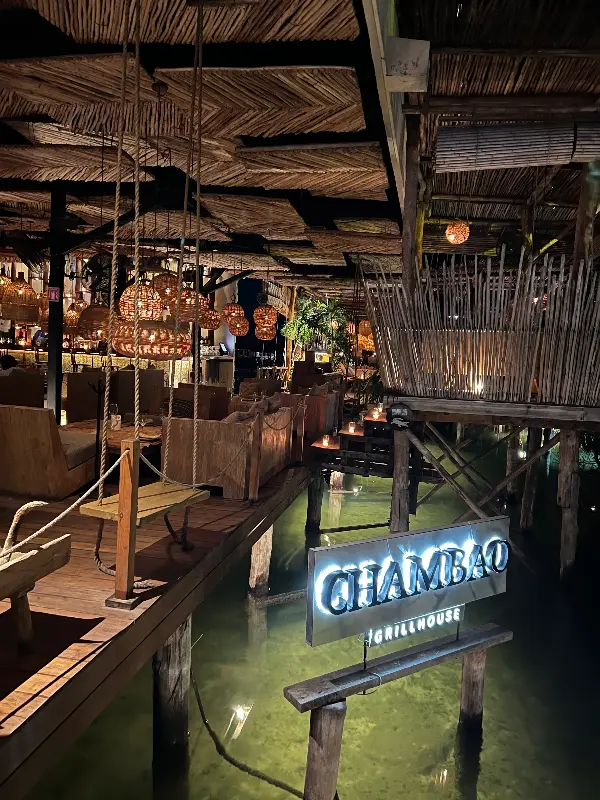 챔바오는 그야말로 ‘인생샷’을 건질 수 있는 곳이다. 레스토랑 구석구석이 예술 작품처럼 꾸며져 있어, 어디에서 사진을 찍어도 멋진 배경이 되어준다. 나무 계단을 따라 올라가면 마치 새 둥지 같은 공간이 나타나고, 그곳에서는 칸쿤의 아름다운 야경을 감상할 수 있다.