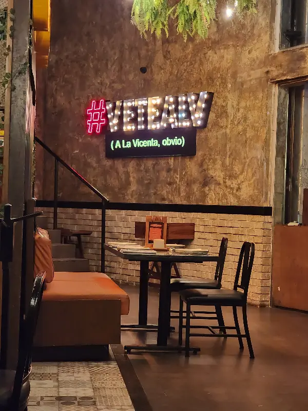 칸쿤에서 특별한 저녁 식사를 꿈꾸며, 라 비센타(La Vicenta)의 문을 열었습니다. 문을 열자마자 라틴 음악의 흥겨운 리듬이 온몸을 감싸고, 따뜻한 조명이 아늑한 분위기를 연출했습니다. 벽돌 벽에 걸린 네온사인 간판 ‘#VeteALV (A La Vicenta, obvio)’는 이곳만의 개성을 드러내는 듯했습니다. 직원들의 친절한 미소와 활기찬 에너지 덕분에, 레스토랑에 들어서는 순간부터 기분 좋은 설렘이 가득 찼습니다. 마치 오랜 친구 집에 놀러 온 듯한 편안함, 이것이 라 비센타의 첫인상이었습니다.