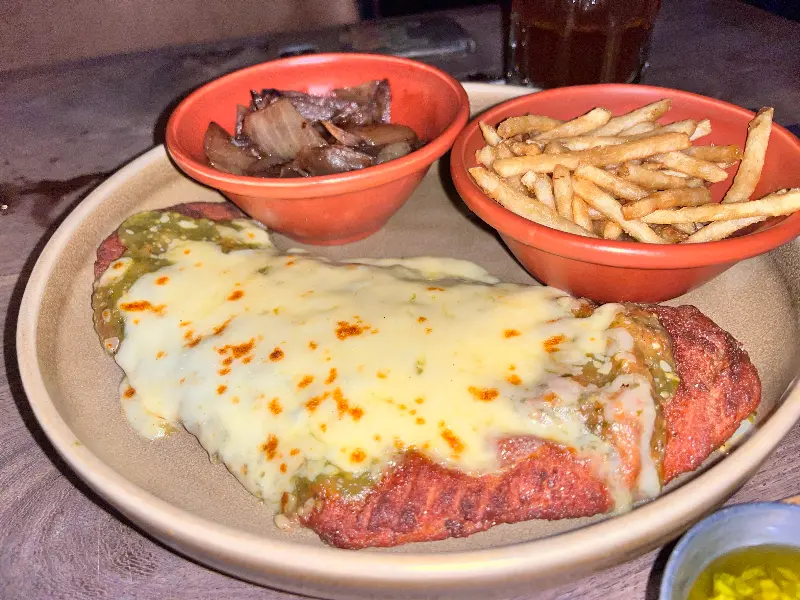 치즈가 듬뿍 올려진 스테이크, 풍성한 비주얼만큼이나 맛도 훌륭합니다.