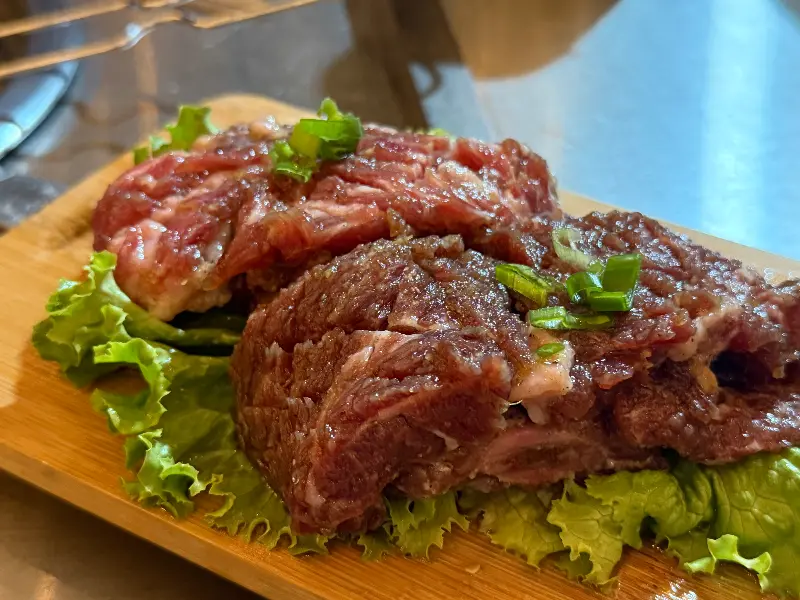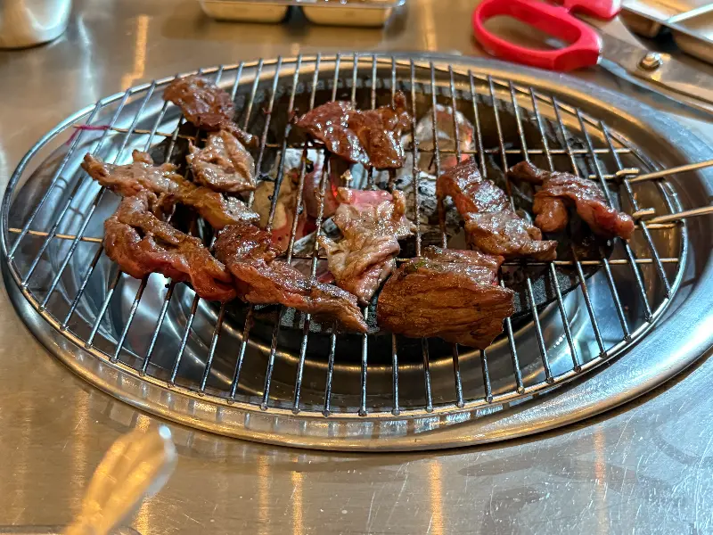 메뉴판을 펼치니 삼겹살, 소갈비, 김치찌개 등 다양한 한식 메뉴들이 눈길을 사로잡았다. 특히 숯불 돼지갈비에 대한 칭찬이 자자하여 망설임 없이 주문했다. 잠시 후, 숯불이 들어오고, 곧이어 윤기가 자르르 흐르는 돼지갈비가 테이블에 놓였다. 숯불 위에 올려진 갈비는 지글거리는 소리와 함께 향긋한 연기를 피워 올렸다. 숯불 향이 은은하게 배어든 돼지갈비는 한국에서 먹던 맛 그대로였다.