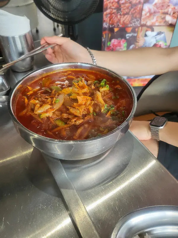 돼지갈비와 함께 주문한 김치찌개는 잊고 있었던 한국의 맛을 되살려주는 마법과 같았다. 적당히 익은 김치의 깊은 맛과 얼큰한 국물은 느끼함으로 지쳐있던 속을 시원하게 풀어주었다. 특히, 이곳 김치는 멕시코에서 맛본 김치 중 단연 최고였다. 김치찌개에 밥 한 공기를 뚝딱 비우니, 마치 한국에 있는 듯한 착각마저 들었다.