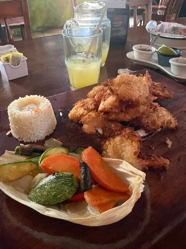 함께 제공된 신선한 야채와 밥 또한 훌륭했다. 밥은 윤기가 흐르고 고슬고슬했으며, 야채는 신선하고 아삭했다. 코코넛 새우와 밥, 야채를 함께 먹으니 그 맛이 더욱 풍성해졌다. 25년 동안 엘 티몬을 꾸준히 방문했다는 한 손님의 후기가 이해가 되는 순간이었다.