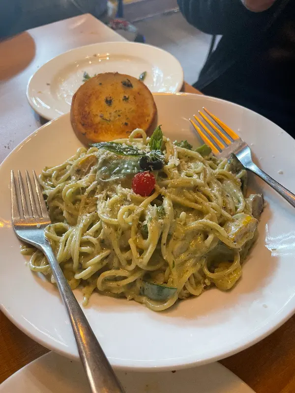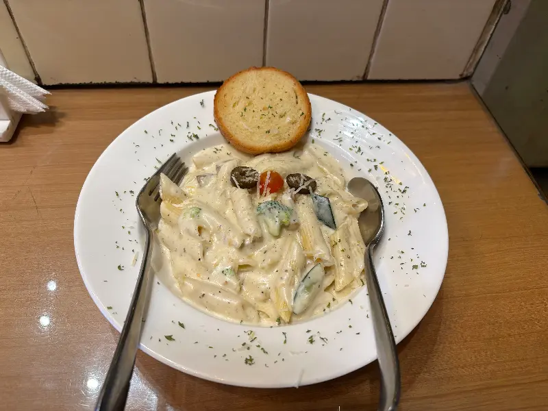 크리미 페스토 스파게티는 부드러운 크림소스와 향긋한 페스토의 조화가 인상적이다. 다만, 진한 파스타 요리를 즐기지 않는 사람에게는 다소 느끼하게 느껴질 수도 있다. 샐러드는 신선한 채소와 드레싱이 어우러져 입맛을 돋우는 역할을 한다. 특히 피자와 파스타를 함께 주문하면 느끼함을 잡아주는 역할을 하여 더욱 만족스러운 식사를 즐길 수 있다.