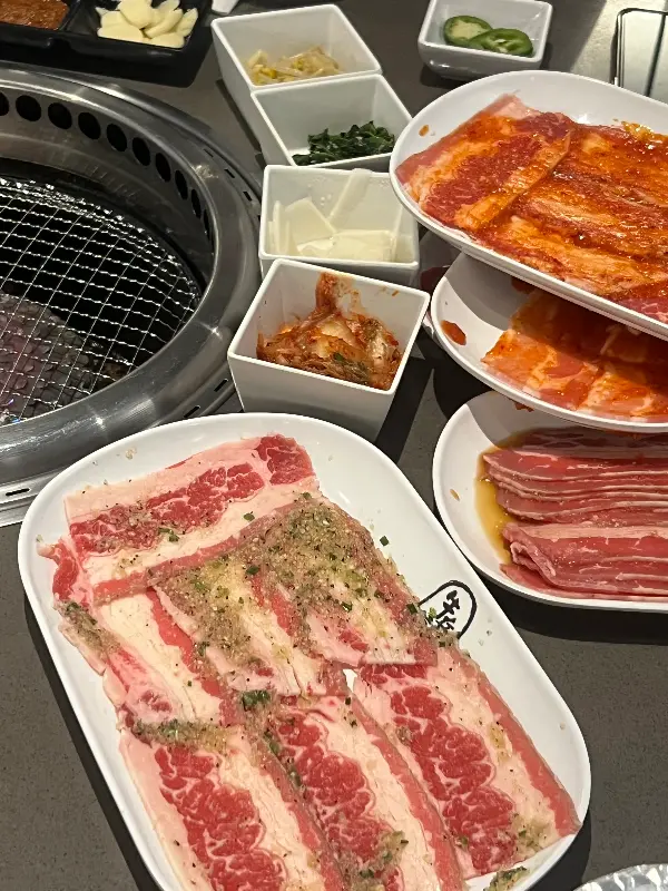 규비의 메뉴는 다양한 한식 요리를 제공하지만, 그중에서도 단연 돋보이는 것은 갈비와 삼겹살입니다. 신선한 고기의 품질은 물론, 한국에서 직접 공수해온 듯한 정갈한 밑반찬들은 입맛을 돋우기에 충분했습니다. 특히, 잘 익은 김치는 갈비, 삼겹살과 환상적인 궁합을 자랑했습니다.
