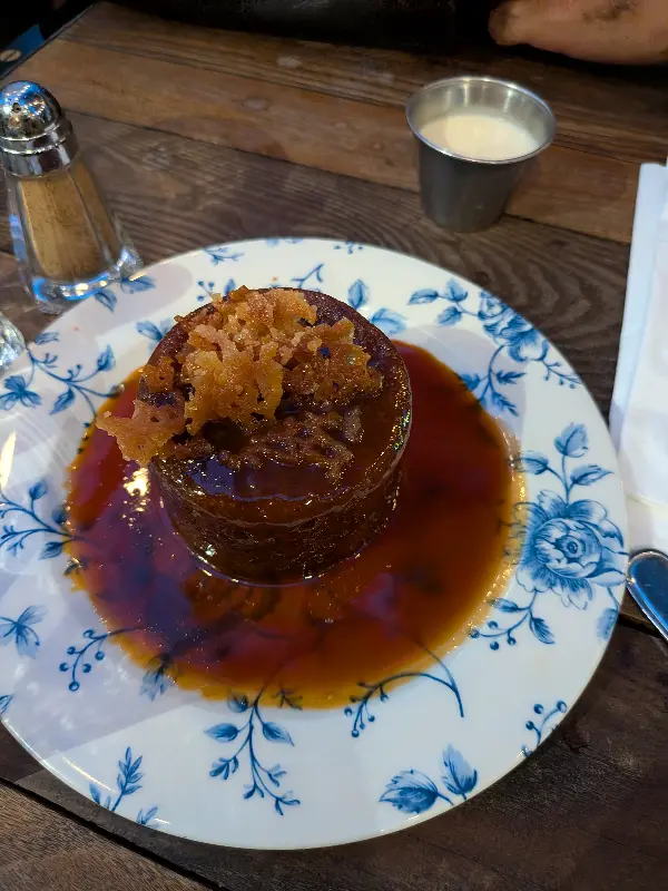 마지막으로 나온 스티키 토피 푸딩은 촉촉한 케이크와 달콤한 소스가 환상적인 조화를 이루었습니다. 너무 달지도 않고 적당히 달콤해서, 기분 좋게 식사를 마무리할 수 있었습니다. 따뜻한 커피와 함께 푸딩을 먹으니, 온몸이 녹아내리는 듯했습니다.