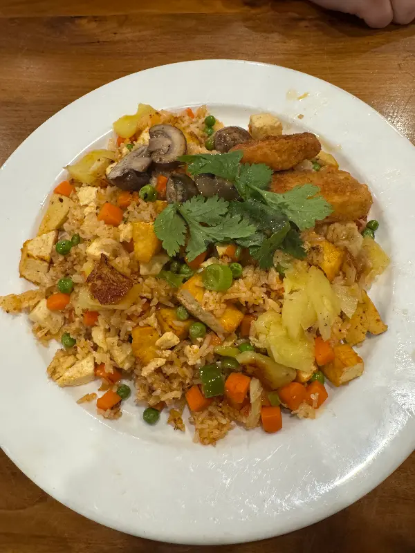 비건 볶음밥 또한 훌륭한 선택입니다. 다채로운 채소와 고소한 두부가 어우러져 건강하면서도 풍성한 맛을 선사합니다.