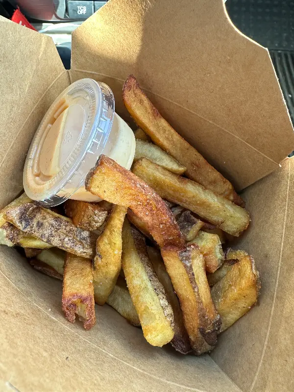겉은 바삭하고 속은 촉촉한 감자튀김은 Salty Blue의 특별한 소스와 함께 제공됩니다.