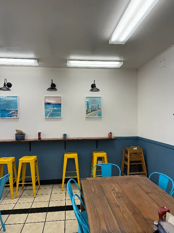 Salty Blue 내부의 깔끔하고 편안한 분위기는 식사를 더욱 즐겁게 만들어 줍니다.