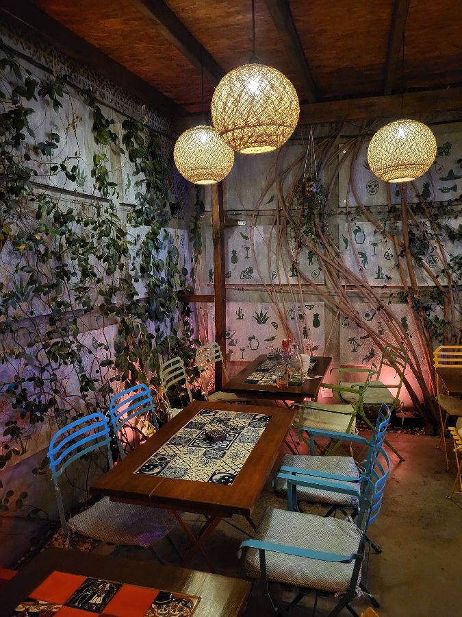 멘티로사에 들어서자마자 눈을 사로잡는 것은 다채로운 색감으로 가득한 안뜰이다. 벽면을 타고 흐르는 듯한 푸른 식물들과 형형색색의 테이블, 그리고 곳곳에 놓인 아기자기한 장식품들이 라틴 아메리카의 정취를 물씬 풍긴다. 마치 멕시코의 어느 작은 도시에 와 있는 듯한 착각을 불러일으킨다.