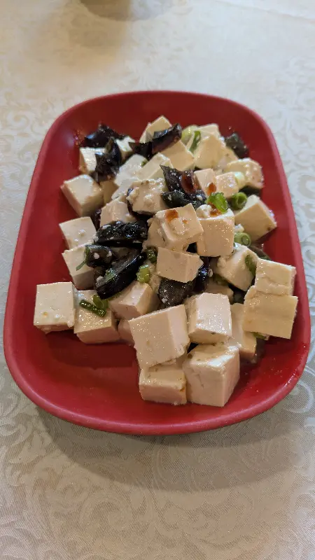 ‘두부와 삭힌 계란’ 요리는 신선한 순두부에 삭힌 계란을 얹어 먹는 음식으로, 독특한 비주얼만큼이나 잊을 수 없는 맛을 자랑한다. 삭힌 계란 특유의 짭짤하면서도 깊은 풍미가 부드러운 순두부와 절묘하게 어우러져 입맛을 돋우는 매력이 있다. 어린 시절 할머니가 해주시던 바로 그 맛, 추억을 되살리는 듯한 따뜻함이 느껴졌다.