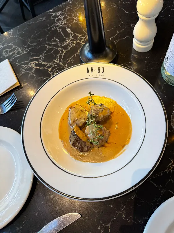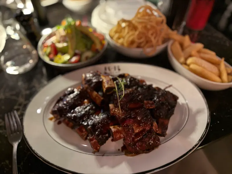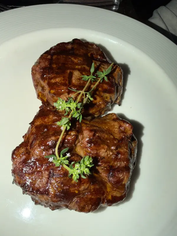 스테이크는 내가 먹어본 스테이크 중 최고였다. 겉은 바삭하고 속은 촉촉한 완벽한 굽기, 입안에서 살살 녹는 부드러운 육질, 풍부한 육즙까지, 모든 것이 완벽했다. 특히 브라이언이 추천해 준 크림 시금치 스테이크는 정말 훌륭했다. 크리미한 시금치와 부드러운 스테이크의 조화는 환상적이었다. 아내는 양 정강이를 정말 좋아했다. 부드럽게 익은 양고기는 입안에서 살살 녹았고, 풍부한 향신료는 풍미를 더했다.