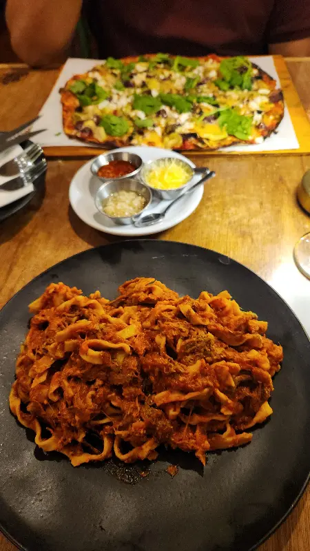 옆 테이블에서 맛있게 피자를 먹는 사람들을 보며, 다음에는 꼭 피자를 먹어봐야겠다고 다짐했다. 한 리뷰어는 옆에 앉았던 여자분들이 먹던 피자가 맛있어 보였다고 언급했다. Woodlands Eatery는 파스타뿐만 아니라, 피자 맛집으로도 유명한 곳이었다. 특히, 베지테리언 피스트 피자는 신선한 채소와 풍성한 토핑이 조화롭게 어우러져, 건강하면서도 맛있는 한 끼 식사를 제공한다. 사진 속 피자처럼, 얇고 바삭한 도우 위에 듬뿍 올려진 신선한 채소들은 보기만 해도 입맛을 돋운다.