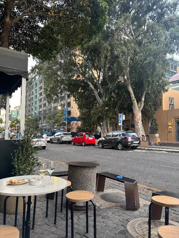 실내 좌석 외에도 야외 테라스 자리가 마련되어 있었는데, 케이프타운의 활기찬 분위기를 느끼기에 더할 나위 없이 좋았다. 나무 그늘 아래, 살랑이는 바람을 맞으며 와인을 즐기는 사람들의 모습은 여유로움 그 자체였다.