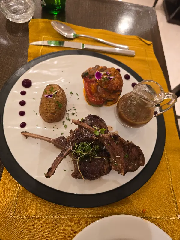 고심 끝에 전채요리로는 신선한 야채 샐러드를, 메인 코스로는 숯불 향이 가득한 양갈비 스테이크를 주문했다. 곁들여 마실 와인으로는 직원에게 추천받은 레드 와인 한 잔을 선택했다. 와인잔에 찰랑이는 루비 빛깔의 와인은 그 자체로도 하나의 예술 작품처럼 보였다.