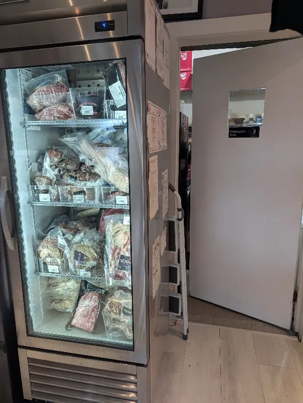 냉장고 안에는 신선한 치즈와 햄, 샌드위치 재료들이 보기 좋게 진열되어 있습니다. 특히 다양한 종류의 치즈는 셰브르의 자랑이라고 할 수 있습니다.