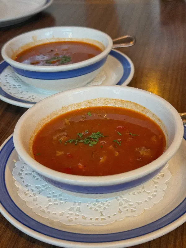 드디어 팀원들이 극찬했던 독일식 돼지 족발이 나왔다. 겉은 바삭하고 속은 촉촉한, 이른바 ‘겉바속촉’의 정석을 보여주는 비주얼이었다. 돼지 껍데기는 짭짤하면서도 고소했고, 속살은 부드럽고 촉촉했다. 함께 제공되는 머스타드 소스를 곁들이니, 느끼함은 사라지고 풍미는 더욱 깊어졌다. 평소 싱겁다고 생각했던 독일 고기 요리에 대한 나의 편견을 완전히 깨는 맛이었다. 족발과 함께 나온 바삭한 소시지와 사이드 메뉴들도 훌륭했다.
