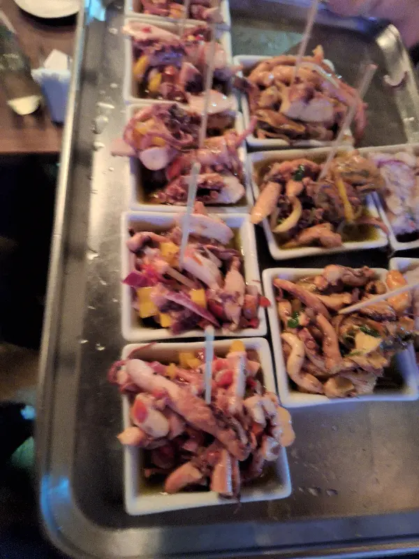타파스가 나오기 전, 웨이터가 작은 접시에 담긴 에피타이저 샘플을 가져왔습니다. 한 입 맛보니 입 안 가득 퍼지는 풍미가 정말 훌륭했습니다. 짭짤하면서도 고소한 맛이 식욕을 돋우는 역할을 제대로 하더군요. 잠시 후, 드디어 기다리고 기다리던 타파스가 나왔습니다. 알록달록한 색감과 정갈한 플레이팅이 시선을 사로잡았습니다. 타파스 하나하나에 정성이 가득 담겨 있다는 것을 느낄 수 있었죠.
