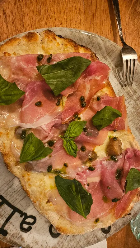 핀세리아 C’ho Fame에서는 다양한 토핑의 핀자를 맛볼 수 있습니다. 짭짤한 프로슈토와 신선한 루꼴라, 고소한 파르미지아노 레지아노 치즈가 올라간 핀자는 환상적인 조합을 자랑합니다. 구운 가지와 올리브, 부드러운 리코타 치즈가 올라간 핀자는 채식주의자들에게도 훌륭한 선택입니다. 핀자 위에 올려진 바질은 신선함을 더하고, 핀자의 풍미를 한층 더 깊게 만들어줍니다. 사진 속 핀자처럼, 다채로운 색감과 신선한 재료들이 조화롭게 어우러진 핀자는 눈과 입을 모두 즐겁게 합니다.