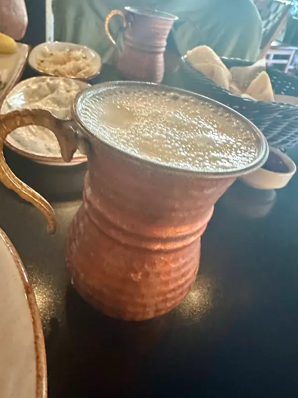 독특한 비주얼의 구리 잔에 담긴 아이란을 주문해 보았습니다. (Image 5) 시원하고 청량한 맛은 좋았지만, 묘하게 금속 맛이 느껴져서 썩 유쾌하지는 않았습니다. 아마도 구리 잔 자체의 특성 때문인 것 같았습니다.