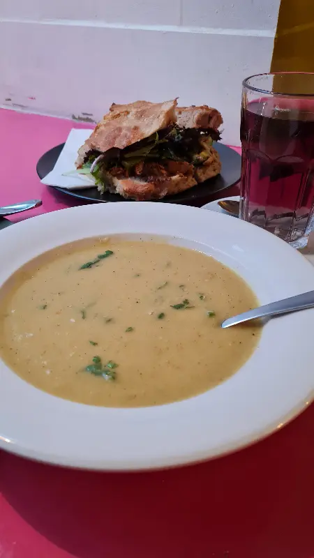 샌드위치와 함께 렌틸콩 수프도 주문했습니다. 수프는 마치 엄마가 끓여주는 듯한 깊고 풍부한 맛이었습니다. 렌틸콩의 부드러움과 향긋한 허브 향이 어우러져, 추운 날씨에 몸을 따뜻하게 녹여주는 완벽한 메뉴였습니다.