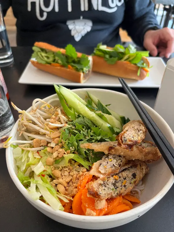 쌀국수를 맛본 남편은 사이공에서 먹었던 쌀국수와 거의 흡사하다며 감탄했다. 깊고 진한 육수와 부드러운 쌀국수 면, 그리고 향긋한 허브의 조화는 완벽했다. 특히 레몬그라스 소고기 반미와 함께 곁들여 먹으니, 베트남의 풍미를 더욱 풍성하게 느낄 수 있었다.
