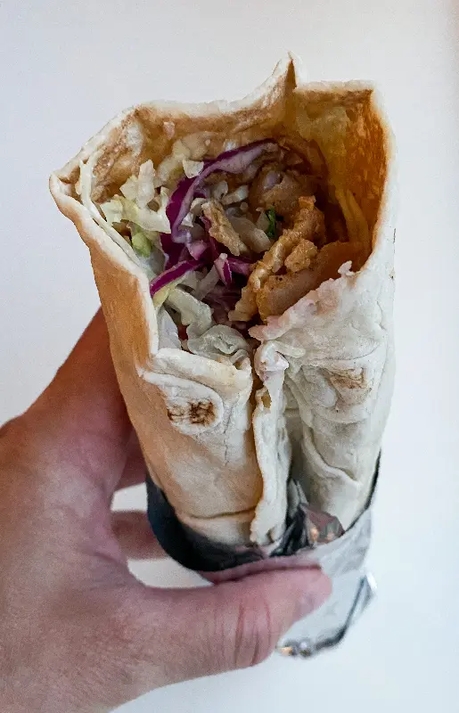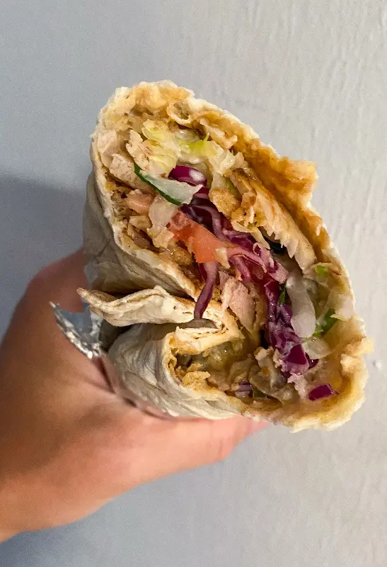 드디어 기다리고 기다리던 듀럼 샤와르마가 나왔다. 따뜻한 빵 안에 육즙 가득한 고기와 신선한 채소가 듬뿍 들어 있었다. 한 입 베어 무는 순간, 입안 가득 퍼지는 풍미에 감탄하지 않을 수 없었다. 고기의 촉촉함과 야채의 아삭함, 그리고 소스의 매콤함이 완벽한 조화를 이루었다. 특히, 양고기의 풍미는 정말 최고였다. 빵은 겉은 살짝 바삭하면서도 속은 부드러웠고, 신선한 야채들은 아삭아삭 씹히는 식감이 좋았다.