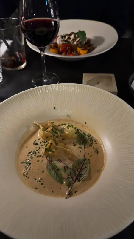 레스토랑 내부는 은은한 조명과 부드러운 음악 소리로 가득했다. 테이블 간 간격도 적당해서 편안하게 대화를 나눌 수 있었다. 벽에는 와인병들이 진열되어 있었고, 곳곳에 놓인 초들이 낭만적인 분위기를 더했다. 누군가는 이곳의 음향 시설에 아쉬움을 표하기도 했지만, 내가 방문했을 때는 불편함을 느끼지 못했다. 오히려 적당한 소음은 편안한 분위기를 조성하는 데 도움이 되었다.