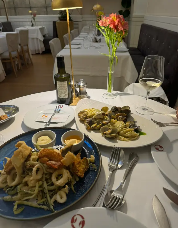 고민 끝에 리조또와 파스타를 주문했습니다. 잠시 후, 테이블 위로 먹음직스러운 리조또가 놓였습니다. 윤기가 흐르는 쌀알 사이로 신선한 해산물이 듬뿍 들어 있었고, 진한 내장 향이 코를 자극했습니다. 한 입 맛보는 순간, 입 안 가득 퍼지는 풍미에 감탄했습니다. 해산물의 신선함과 쌀알의 톡톡 터지는 식감이 완벽하게 어우러졌고, 한국에서는 경험할 수 없는 특별한 맛이었습니다. 알단테 식감을 좋아한다면 분명 만족할 만한 맛입니다.