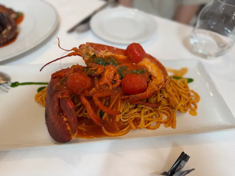 붉은 토마토 소스에 버무려진 랍스터 파스타는 시각적인 즐거움까지 더했다. 큼지막한 랍스터 한 마리가 통째로 올라간 파스타는 특별한 날을 기념하기에 완벽했다.