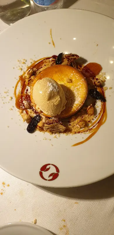 둥근 접시에 담겨 나온 치즈케이크는 아이스크림과 함께 제공되었다. 촉촉한 케이크 시트 위에는 슈가 파우더가 솔솔 뿌려져 있었고, 주변에는 바삭한 견과류가 흩뿌려져 있었다. 달콤하고 고소한 맛의 조화는 잊을 수 없는 맛이었다.
