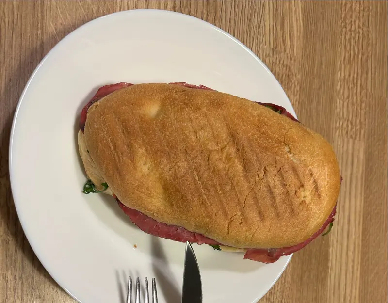 주문이 들어가자마자, 주인장은 능숙한 손놀림으로 파니니를 만들기 시작했다. 갓 구운 빵 사이에 신선한 재료들을 아낌없이 넣고, 그릴에 노릇하게 구워낸 파니니. 따뜻한 온기와 함께 맛있는 냄새가 코를 자극했다. 바삭하게 구워진 빵은 보기만 해도 군침이 돌았다. 콜로세움 관광 후 지친 몸과 마음에 활력을 불어넣어 줄 완벽한 간식이라는 생각이 들었다.