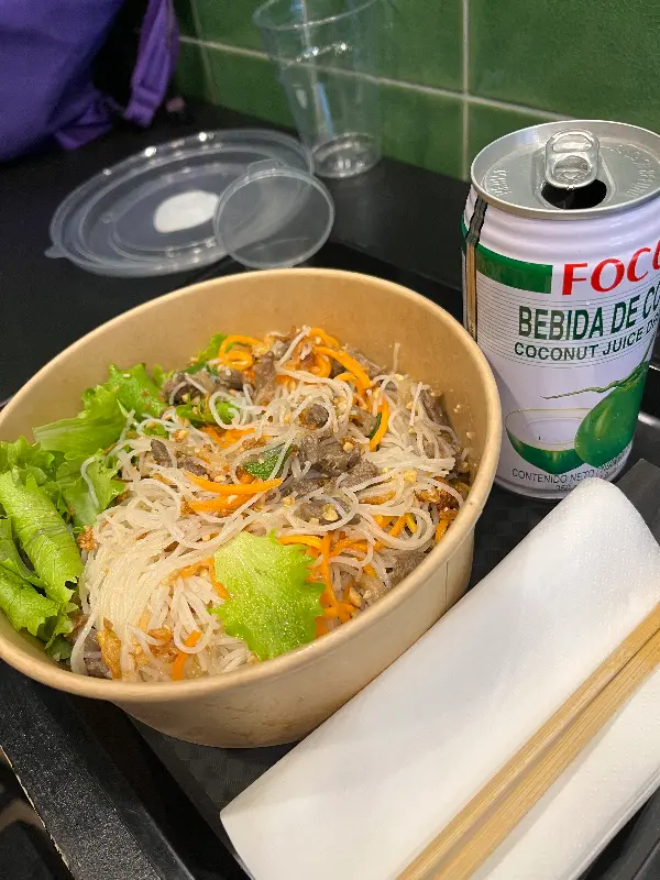 쌀국수를 예상하고 주문한 분보싸오는 뜻밖에도 비빔면의 형태로 나왔다. 당황스러움도 잠시, 상큼한 소스가 면과 채소에 골고루 버무려진 모습에 침샘이 자극되었다.