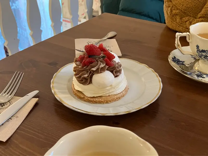 차와 함께 곁들일 디저트로는 몽블랑을 선택했습니다. 몽블랑은 밤 크림과 머랭으로 장식된 프랑스의 대표적인 디저트입니다. 부드러운 밤 크림과 바삭한 머랭의 조화는 환상적이었습니다. 달콤하면서도 고소한 맛은 입안 가득 행복을 선사했습니다.