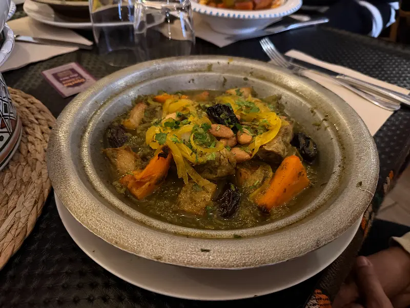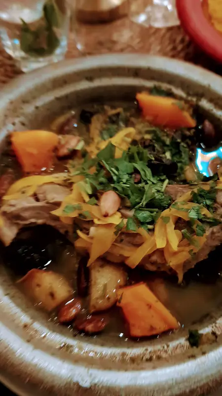 방문객들은 “따진은 햇살의 향이 가득하다”라며 극찬을 아끼지 않았습니다. 사진에서 보이는 것처럼, 윤기가 흐르는 촉촉한 고기와 알록달록한 채소들이 어우러져 보기만 해도 군침이 도는 비주얼을 자랑합니다. 특히 양고기, 아몬드, 자두를 넣은 따진은 달콤하면서도 고소한 맛이 일품이라고 합니다.