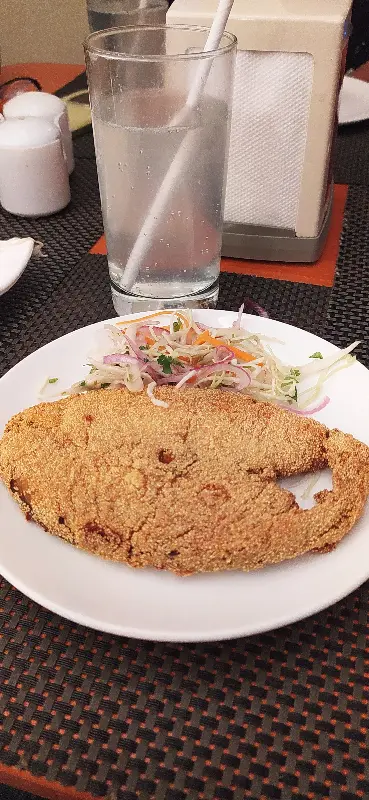 고아식 칠리 치킨은 매콤하면서도 달콤한 맛이 일품이었습니다. 닭고기는 부드럽고 촉촉했고, 소스는 밥과 함께 먹으니 정말 꿀맛이었습니다. 킹피쉬 라와 프라이는 신선한 생선을 바삭하게 튀겨내, 고소한 풍미가 입안 가득 퍼졌습니다.