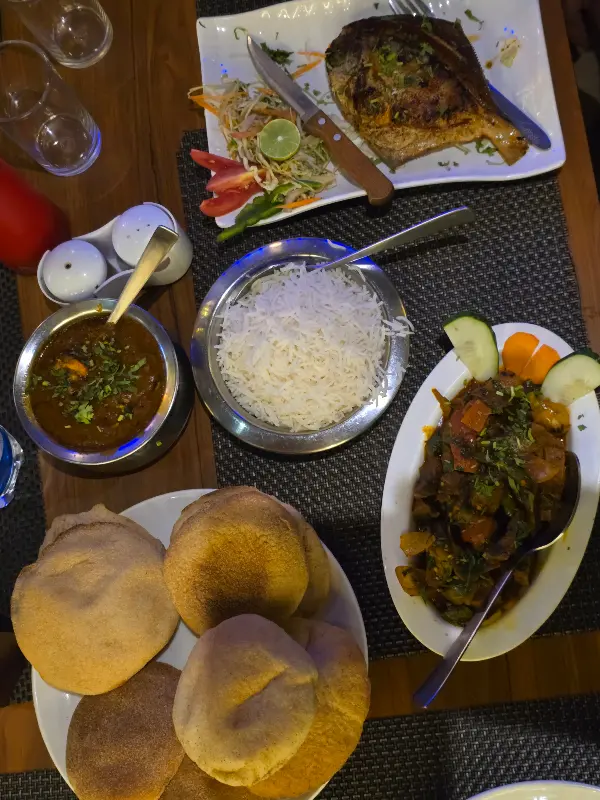 생선을 좋아하는 사람이라면, 비바 고아(Viva Goa)는 꼭 가봐야 할 곳입니다. 새우 생선 카레와 청옥 생선 카레는 정말 최고였습니다. 신선한 해산물과 풍부한 향신료가 어우러진 맛은, 밥과 차파티/로티와 환상의 궁합을 자랑했습니다.