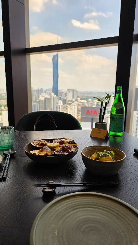 두근거리는 마음으로 향한 곳은 쿠알라룸푸르 반얀트리 호텔 53층에 위치한 특별한 레스토랑이었다. 문이 열리는 순간, 도시의 화려한 야경이 한눈에 들어왔다. 은은하게 빛나는 조명 아래, 테이블마다 놓인 꽃 장식이 섬세한 분위기를 더했다. 이곳은 일본과 페루, 두 문화의 매력이 조화롭게 어우러진 퓨전 음식점이다. 어떤 맛과 경험이 기다릴까 설레는 마음으로 자리에 앉았다.