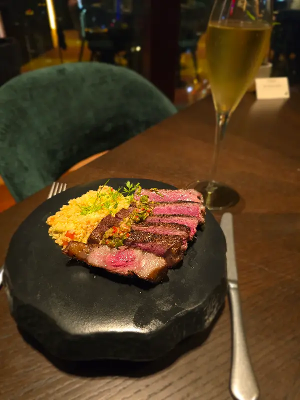 53층 높이에서 펼쳐지는 쿠알라룸푸르의 스카이라인은 그 자체로 훌륭한 요리였다. 해 질 녘 방문하여 석양이 도시를 물들이는 모습부터, 밤이 되어 화려하게 빛나는 야경까지 감상할 수 있었다. 높은 천장 덕분에 공간은 시원하게 트여 있었고, 테이블 간 간격도 넓어 편안하게 식사를 즐길 수 있었다.