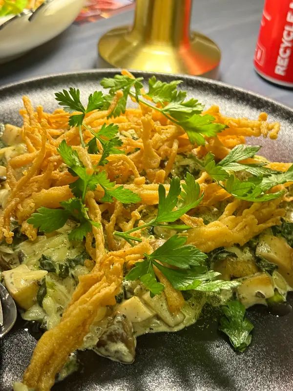 에노키 버섯 오르조 파스타는 부드러운 크림 소스와 버섯의 풍미가 환상적인 조화를 이룬다.