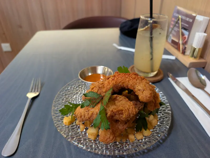 또 다른 방문객은 문어 요리를 주문했는데 튀긴 문어라는 설명이 없어 당황스러웠다고 한다. 문어 자체에 양념이 되어 있지 않고 튀김옷이 두꺼워 아쉬웠다는 의견도 있었다. 하지만 스리라차 소스는 맛있었다고 덧붙였다.