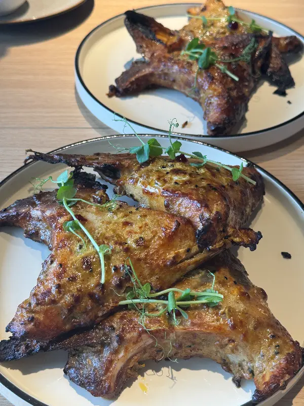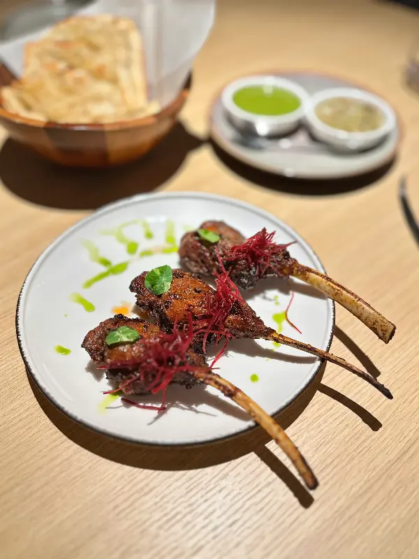 가장 먼저 눈길을 사로잡은 것은 양갈비 찹이었다. 윤기가 자르르 흐르는 겉면과 섬세하게 장식된 플레이팅은 감탄을 자아냈다. 한 입 베어 무니, 겉은 바삭하고 속은 촉촉한 완벽한 조화가 입안 가득 퍼져 나갔다. 은은한 향신료 향과 육즙이 어우러져 깊은 풍미를 선사했고, 곁들여진 민트 소스는 신선함을 더해주어 완벽한 균형을 이루었다.