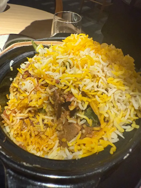야채 브리야니는 향긋한 바스마티 쌀과 신선한 야채, 그리고 다채로운 향신료가 어우러져 풍성한 맛을 자랑했다. 쌀알 하나하나에 깊게 배어 있는 향신료의 풍미는 입안을 즐겁게 자극했고, 야채의 신선함이 더해져 훌륭한 조화를 이루었다. 특히, 함께 제공된 라ida는 브리야니의 매콤함을 부드럽게 감싸주어 더욱 만족스러운 식사를 완성시켜 주었다.