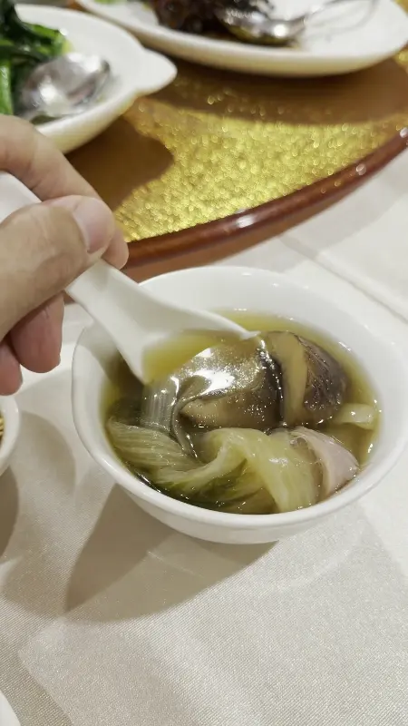 마지막으로 맛본 것은 말린 가리비를 넣은 두 번 삶은 닭고기 수프였다. 뽀얀 국물을 한 입 떠먹으니, 깊고 진한 맛이 온몸을 감쌌다. 닭고기의 부드러운 살과 말린 가리비의 풍미가 어우러져, 정말 훌륭한 맛을 만들어냈다. 마치 오랫동안 정성을 들여 끓인 보양식을 먹는 듯한 느낌이었다.