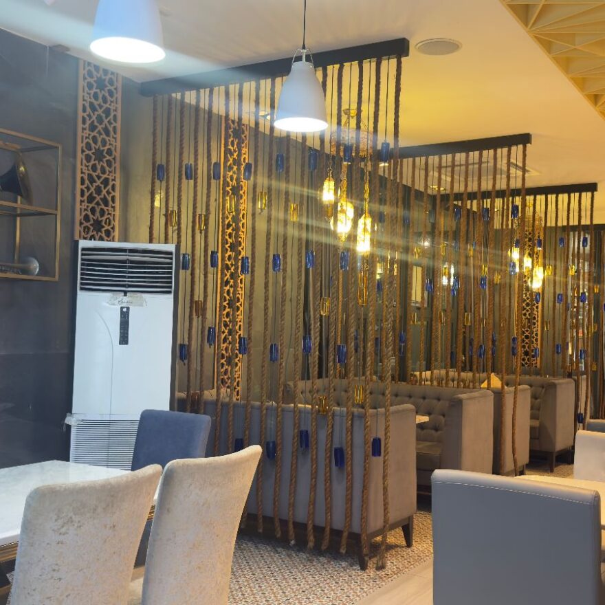 레스토랑에 들어서는 순간, 마치 다른 세계에 온 듯한 기분이 들었다. 은은하게 빛나는 조명과 아랍풍의 섬세한 인테리어는 눈을 뗄 수 없을 만큼 매혹적이었다. 특히 천장에서 늘어진 로프 장식과 곳곳에 놓인 아랍풍 소품들은 아라비안나이트의 한 장면을 연상시켰다. 편안한 소파 좌석에 앉아 메뉴를 펼치니, 다양한 중동 음식들이 눈길을 사로잡았다.