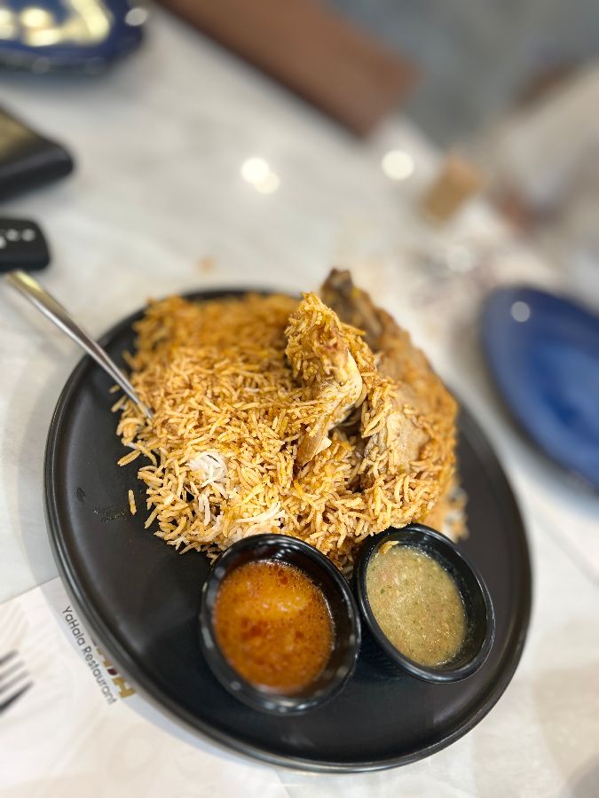 가장 먼저 맛본 것은 양고기 만디였다. 큼지막한 접시에 밥과 양고기가 푸짐하게 담겨 나왔는데, 보기만 해도 군침이 돌았다. 밥은 고슬고슬하면서도 찰기가 있었고, 양고기는 부드럽고 촉촉했다. 특히 양고기 특유의 잡내가 전혀 느껴지지 않아 더욱 맛있게 먹을 수 있었다. 함께 나온 소스를 곁들여 먹으니, 풍미가 더욱 깊어졌다.